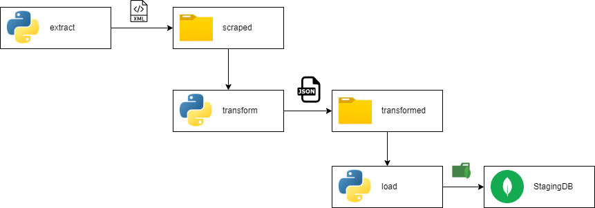 Dieser Ordner wird schließlich von der Lade-Routine aufgegriffen, und jedes Dokument wird in die Staging DB überführt. Dabei werden neue Einträge – anhand der ID ermittelt – komplett neu angelegt, und Felder bestehender Artikel werden aktualisiert. Es findet kein vollständiger Austausch statt, der bereits ermittelte Finanzergebnisse überschreiben würde.